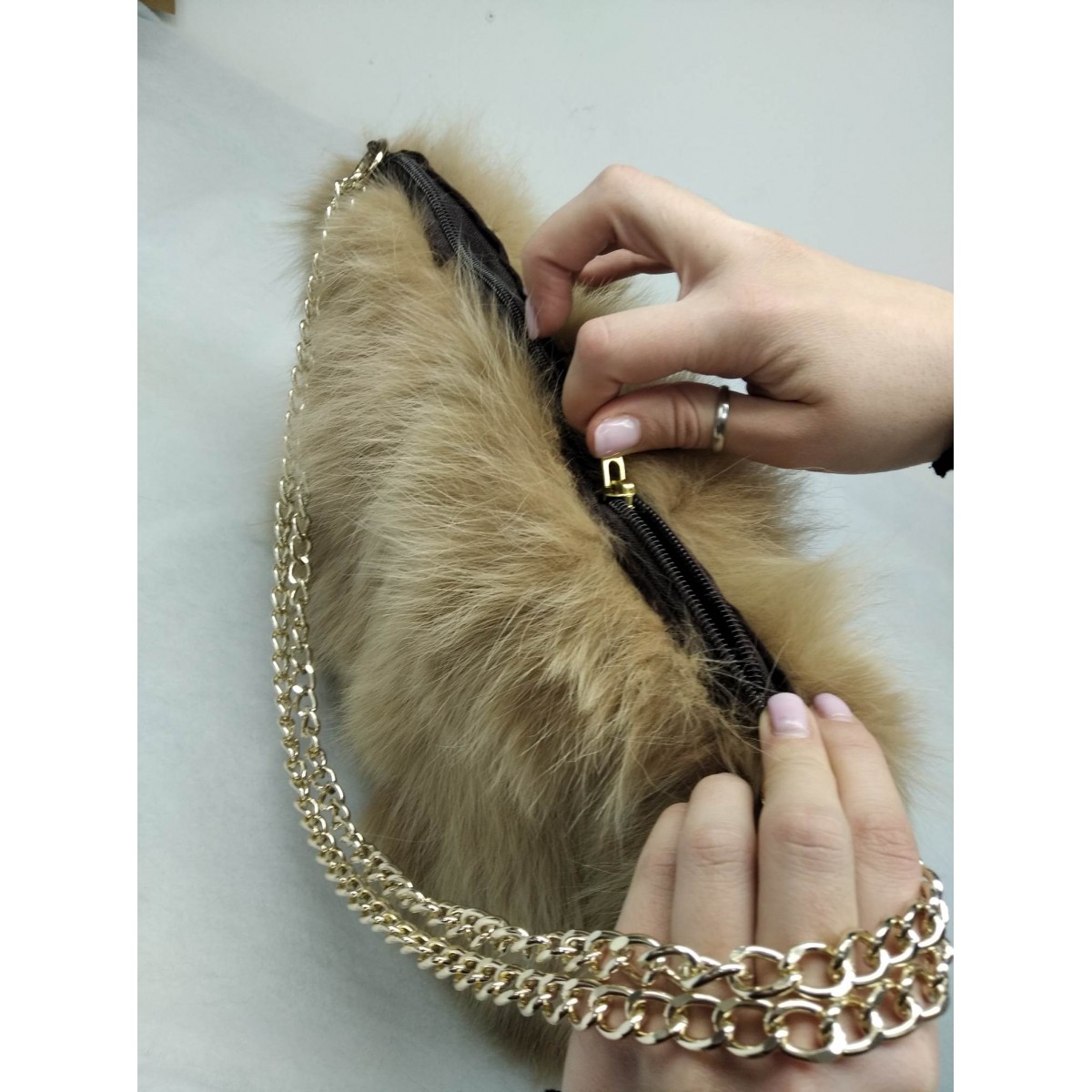 Παστέλ Γούνινη Τσάντα Χειρός