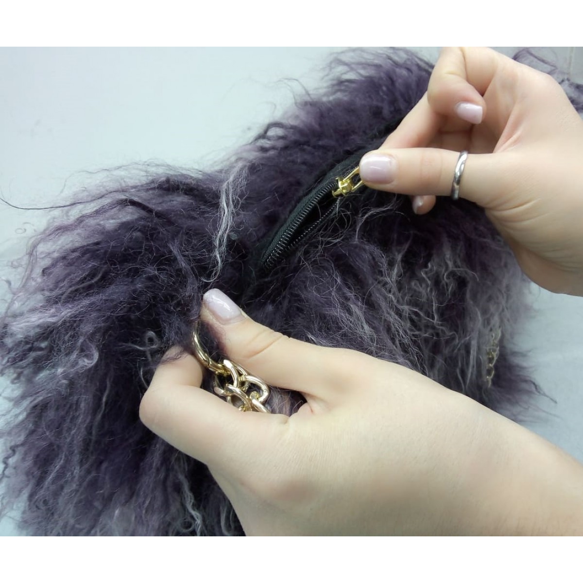 Μώβ Γούνινη Τσάντα Ώμου